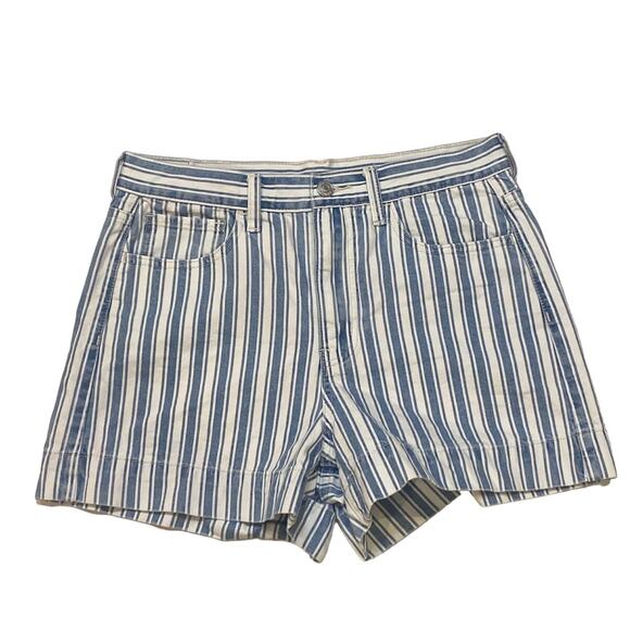 American Eagle Mom Shorts Womens Size 6 Blue Stripe Denim High Waist Hipster