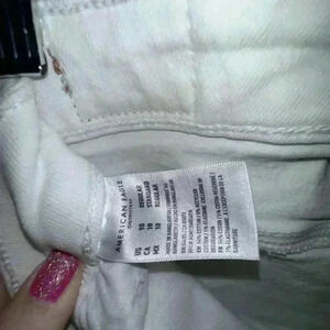 American Eagle Mom Straight Jean White Destroyed high rise stretch, Size 10