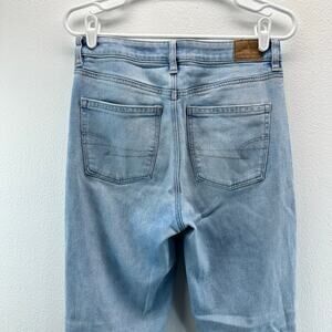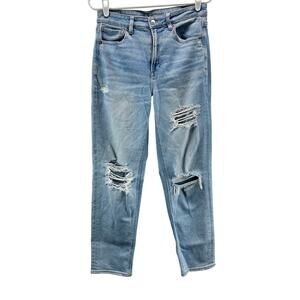 American Eagle Mom Straight Jeans Light Blue Distressed Siz6
