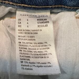 American Eagle Mom Straight jeans in women’s size 4. High-rise stretch denim with a straight leg and medium wash.