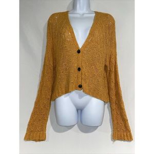 American Eagle Mustard Yellow Button Up Cardigan Sweater Cropped XSmall
