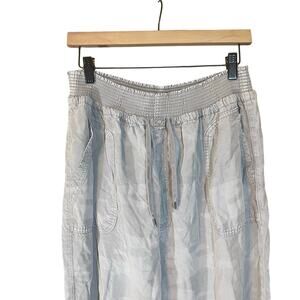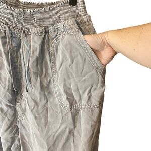 Soft and lightweight American Eagle jogger pants in a muted camo print. Features smocked elastic waist with drawstring, side pockets, and elastic cuffs for a relaxed fit. Made from 100% Lyocell for a breathable, drapey feel. Women’s size XXL. Great pre-loved condition, perfect for casual wear, lounging, or street style.