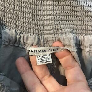 Soft and lightweight American Eagle jogger pants in a muted camo print. Features smocked elastic waist with drawstring, side pockets, and elastic cuffs for a relaxed fit. Made from 100% Lyocell for a breathable, drapey feel. Women’s size XXL. Great pre-loved condition, perfect for casual wear, lounging, or street style.