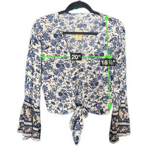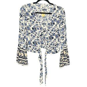 American Eagle NEW Blue White Boho Floral Bell Sleeve Cottagecore Tie Top S