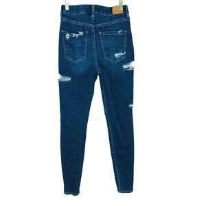American Eagle NE(X)T Level Stretch Jean High Waisted Dark Wash Ripped Jeans. Size 2. Stretch - Cotton/Elastane. Measurements laying flat:
