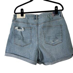 American Eagle NWT Curvy Mom Shorts Light Wash Embroidered Flower Size 16