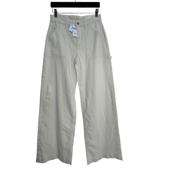 American Eagle NWT baggy wide leg high rise carpenter pants size 4 cream