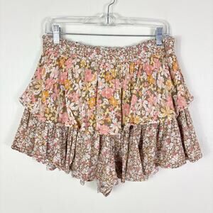 American Eagle Neutral Floral High Waist Pull On Wide Leg Tiered Ruffle Shorts