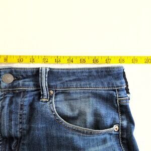 The medium wash denim offers a classic, worn-in look with subtle fading and whiskering across the thighs, adding character without being overly distressed. The straight cut provides a traditional silhouette that is comfortable through the hip and leg.