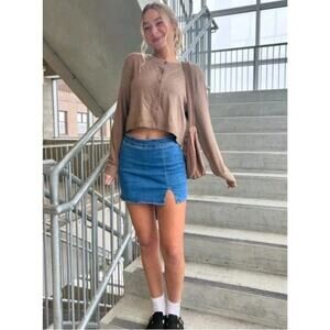 American Eagle Next Level High Rise Denim Mini Skort Light Wash Sz 14 w/Shorts