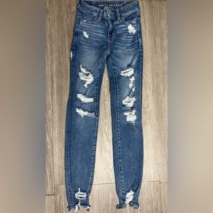 American Eagle Next Level Stretch Hi Rise Jeggings Distressed Size 0 Reg…