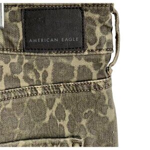 American Eagle Next Level Stretch Hi Rise Mini Skirt. 5 pocket design with zipper and button closure. 53% Cotton, 39% Viscose, 6% Polyester, 2% Elastane. Size 14 with approximate measurements laying flat: 17.5" waist, 16" length.