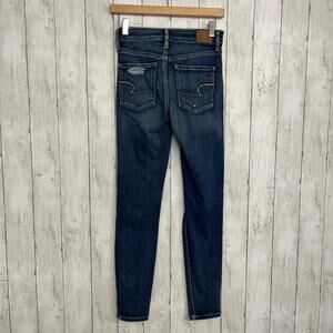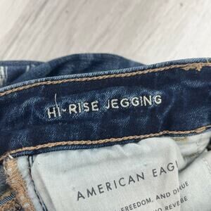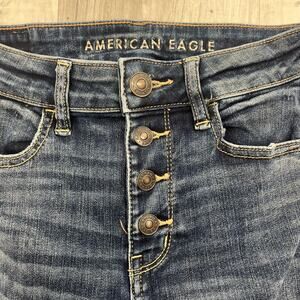 American Eagle Next Level Stretch Hi-Rise Dark Wash Button Distressed Jegging 4