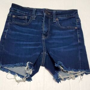 American Eagle Next Level Stretch Hi-Rise Shortie Frayed Distressed Denim Shorts