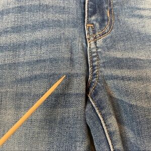 Jeans are in good used condition with some light puckering in material shown in pictures
