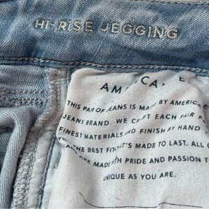Y2K American Eagle Next Level Stretch jeans size 2, short, high-rise jegging. Soft stretchy denim material.Preowned and in good condition.
