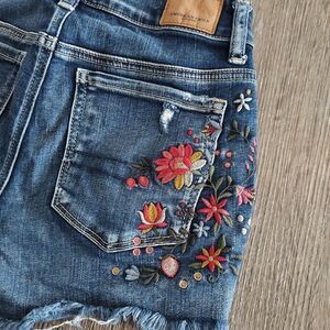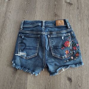 American Eagle Next Level Stretch Floral Embroidered Hi-Rise Shortie Shorts Sz 0