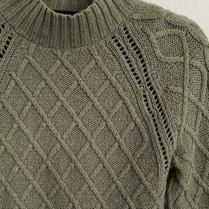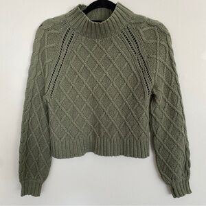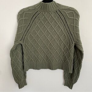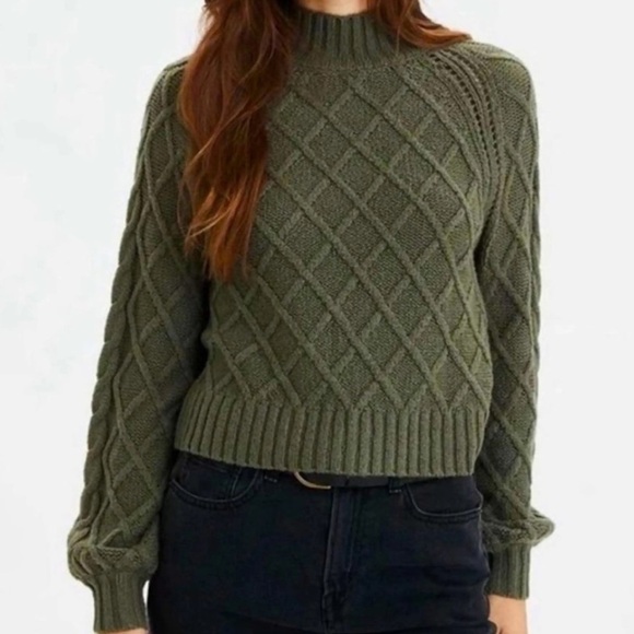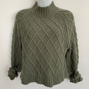American Eagle Olive Green Cable Knit Mockneck Sweater