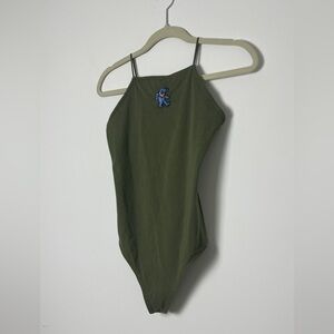 American Eagle Olive Green Grateful Dead Graphic Retro Bodysuit Top Size Medium