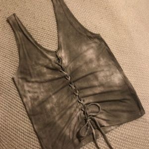 American Eagle Outfitters olive green tank top with criss cross lace up detailing