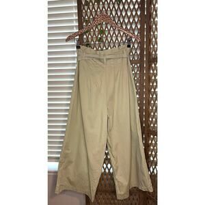 American Eagle Olive Green cropped Flare Paper Bag Pants sz 4R