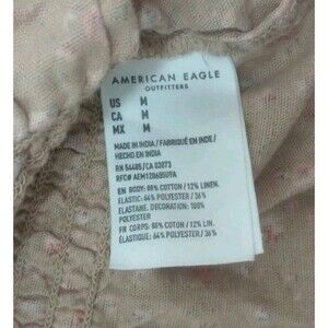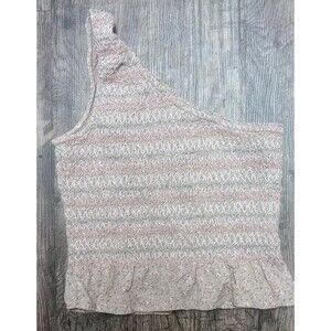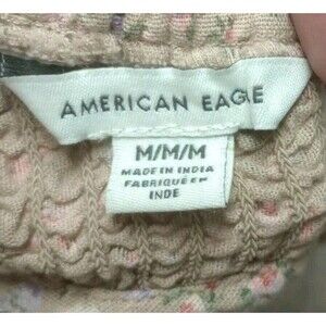 Elevate your wardrobe with this stylish American Eagle one shoulder tank top. The beige color and floral pattern make it perfect for any occasion. The smocked hem adds a touch of elegance to this casual top. It is made of a combination of polyester, elastic, linen, and cotton, making it comfortable to wear. This tank top is perfect for women who want to look chic and trendy. It is available in size Medium. Add this piece to your collection and enjoy a comfortable and stylish look.