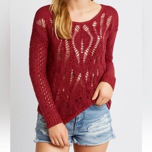American Eagle Open Weave Crochet Sweater Burgundy Red Cranberry Size Large