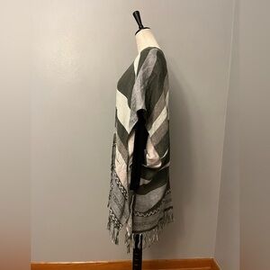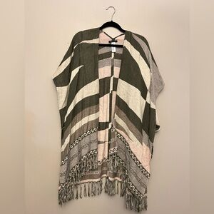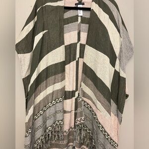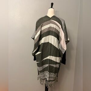 American Eagle Open-front Striped Shawl with Fringe - One Size