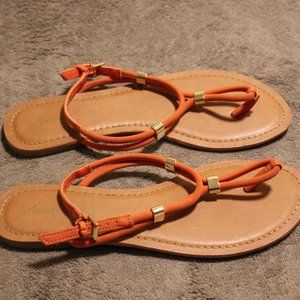 American Eagle Orange & Tan Strappy Sandals 8.5