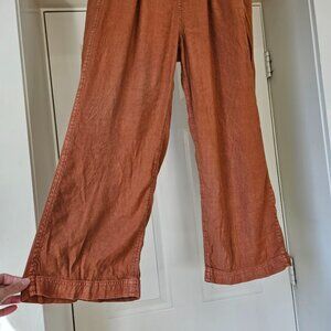 American Eagle Orange Wide Leg Trousers Pants High Waisted Rust Linen Women's 10