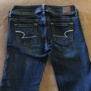 American Eagle Juniors Original Boot Stretch Jeans Sz0Reg. In like new condition. Actual measurements waist 27", inseam 31", front rise 7.5", back rise 11".
