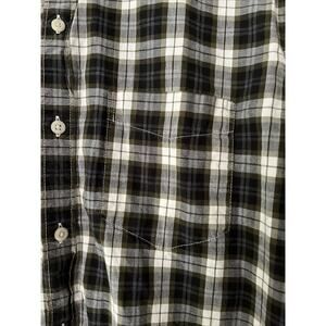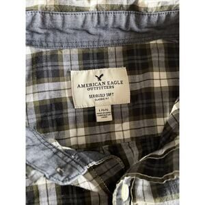 This American Eagle Outfitters button-up shirt is a must-have for any wardrobe. The plaid pattern, collared neckline, and button-down collar style give it a classic Western theme. It's made from seriously soft cotton material and features accents like buttons and a pocket. This shirt is perfect for travel, business, or casual occasions. It's available in size L and is machine washable for easy care. This shirt is part of the American Eagle Outfitters Classic Fit Seriously Soft product line and is suitable for all seasons.