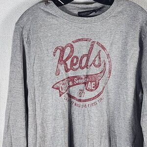 American Eagle Outfitter Grey Cotton Poly Reds Cable Service AE 1977 LS Tee Sz M