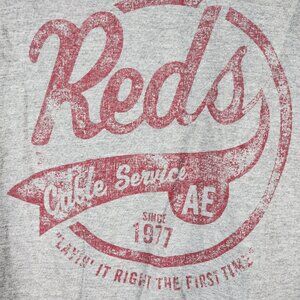American Eagle Outfitters Grey Cotton Poly Reds Cable Service AE 1977 Long Sleeve Tee Size M....Great Looking Shirt with a Little tongue in Cheek Moments for the Jokester who wears It.....Like Brand New......