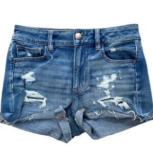 American Eagle Outfitters 360 Super Stretch Distressed Denim Jean Shorts Size 4