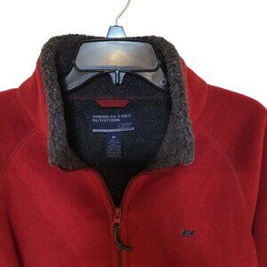 fleece jacket, American Eagle, AE77, performance wear, men's jacket, red jacket, medium size, zippered pockets, casual wear, fall fashion, winter clothing, warm fleece, AE logo