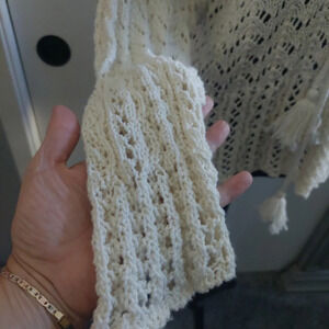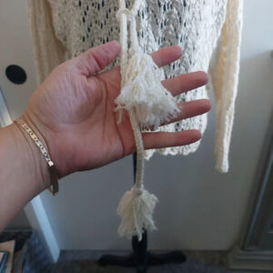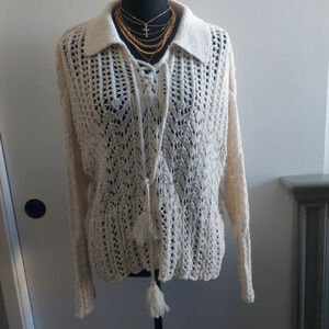 American Eagle Outfitters AEO Open Knit Crocheted polo Sweater Cream Size M Boho