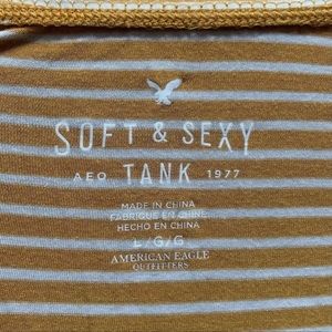 American Eagle Outfitters AEO Soft & Sexy cropped tube top. Strapless golden mustard yellow with white stripes. Cropped length. Very flattering! Good used condition!