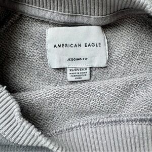 This sweatshirt from American Eagle Outfitters features a unique camo in gray and white, offering a relaxed fit with a crewneck style. The soft fabric and ribbed trim make it perfect for casual wear, providing both comfort and contemporary style.