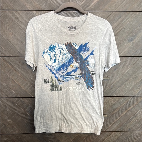 American Eagle Outfitters Artistic Gray and Blue Short Sleeve Tee