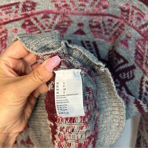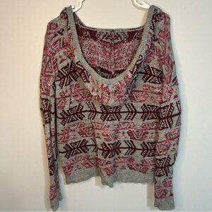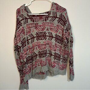 American Eagle Outfitters Aztec Gray Pink V-Neck Hooded Sweater Size Small