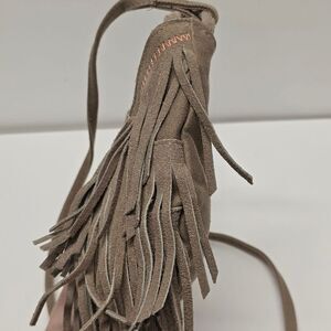 American Eagle Outfitters Beige Tan Suede Leather Fringe Crossbody Boho Purse
