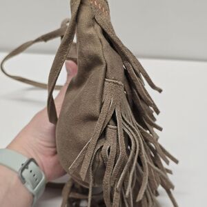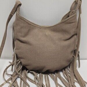 American Eagle Outfitters Beige Tan Suede Leather Fringe Crossbody Boho Hippie Purse Bag.