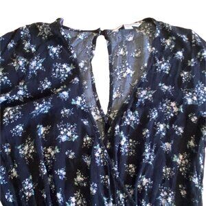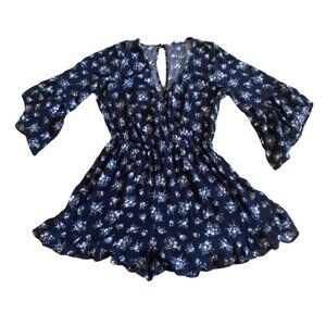 American Eagle Outfitters Bell Sleeve Floral Romper-Size M-Navy Blue-GUC