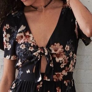 American Eagle Outfitters Black Floral Tie Front Cutout Romper, Size X-Small