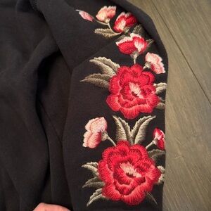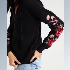 American Eagle Outfitters Black Hoodie with Pink Floral Embroidery