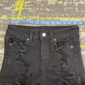 American Eagle Outfitters Black Ripped High Rise Cuffed Denim Mom Shorts