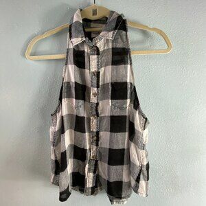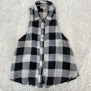 American Eagle Outfitters Black White Check Button Down Tank