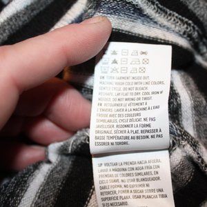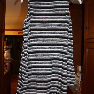 American Eagle Outfitters Black, White & Grey Stripped Turtleneck Sweater Dress. Features long sleeves and cut-out shoulders. Size Medium.
