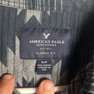 American Eagle Outfitters Black and Gray Classic Fit Shirt Size Small Aztec